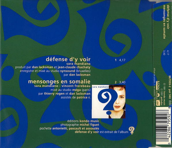 Défense d’y voir est commercialisé en 45 tours, cassette et CD single avec en face B l’inédit Mensonges en Somalie qu’elle signe avec Vincent Frèrebeau. Défense d’y voir est également éditée sur une compilation grecque de chansons françaises ainsi que sur une compilation belge.